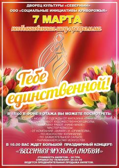 07 марта в 16-00, в ДК "Северный" (м-н Даманский), состоится праздничный концерт "Весенняя музыка любви"
