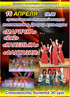 16-го апреля в 16-00, в ДК "Северный" (м-н Даманский), состоится отчетный концерт коллективов Дворца культуры...