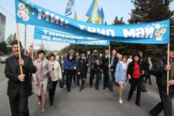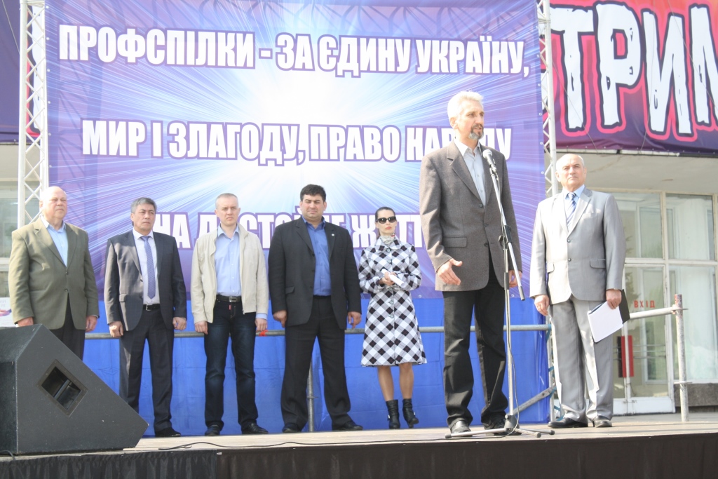 Участники организованного Криворожским городским комитетом ПМГУ Первомайского митинга (а это – более 2,5 тыс. человек) в этот день вышли на городскую площадь, чтобы высказать «категорический протест против безответственных действий центральной власти, которые привели к резкому ухудшению уровня жизни украинцев – трудящихся и ветеранов». Горняки, шахтеры и металлурги в руках держали флаги украинский и профсоюзный, а также транспаранты: «Тарифы ЖКХ – под контроль государства», «Горняки против повышения пенсионного возраста», «Требуем отменить налоги на пенсии» и др.